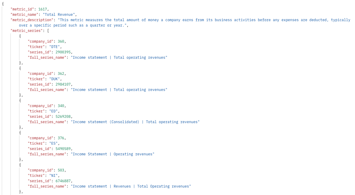 Build your own analytics and custom AI agents. Pull thousands of KPIs for 5,300 tickers directly into your projects at scale, with source-links mapped to each data point for maximum auditability.